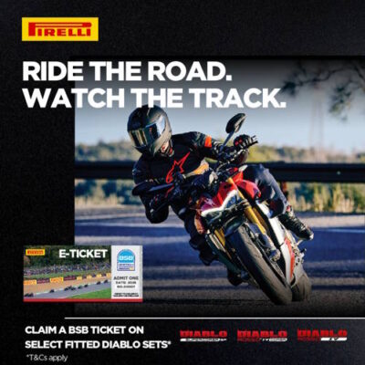 1. Claim a British Superbikes general entrance weekend admission ticket to a 2026 round of your choice when purchasing and having fitted in a single transaction a set (one front and one rear) of V4 SP, Diablo Rosso IV Corsa, Diablo Rosso IV.