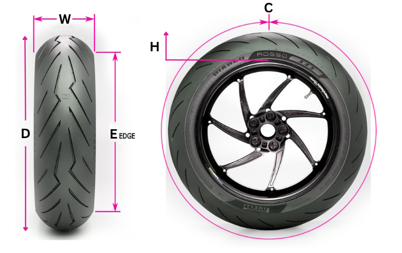 Therefore, the width (W) AND aspect ratio make a difference to the tyre’s height and profile. This also affects the tyre’s rolling circumference.