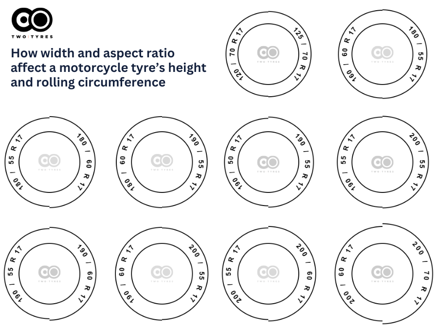 This infographic is a useful way of visualising what happens when you change the width and aspect ratio of your motorcycle tyres.