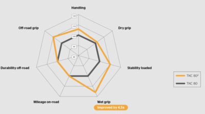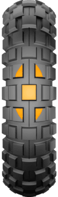 A road legal all-terrain adventure tyre with a blocky tread pattern that rivals the better known offerings from Continental and Michelin. A 70/30 off-road to road bias.